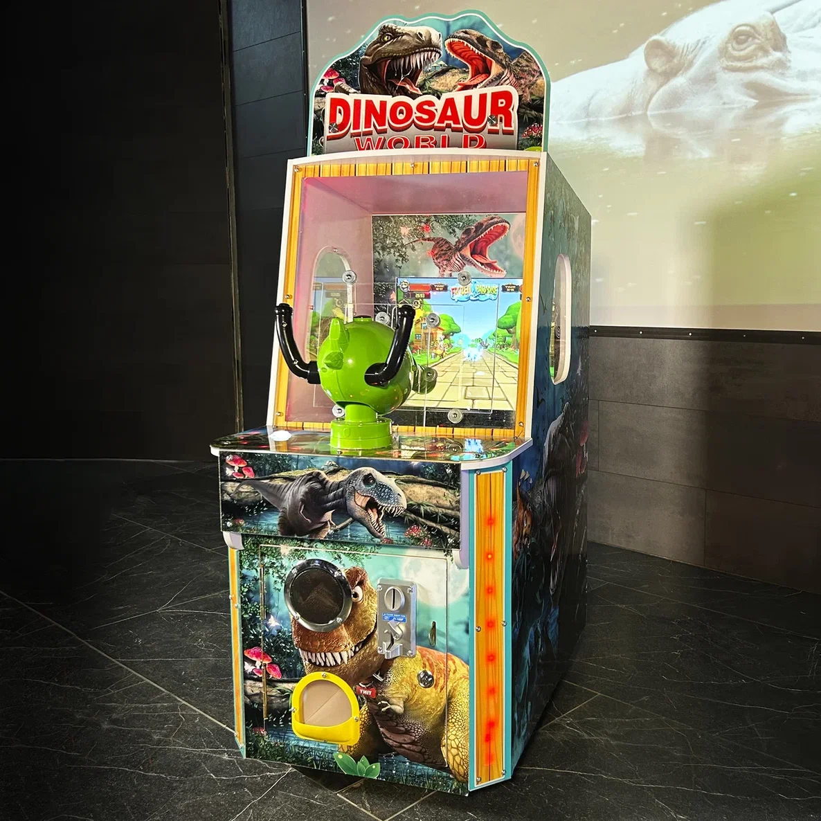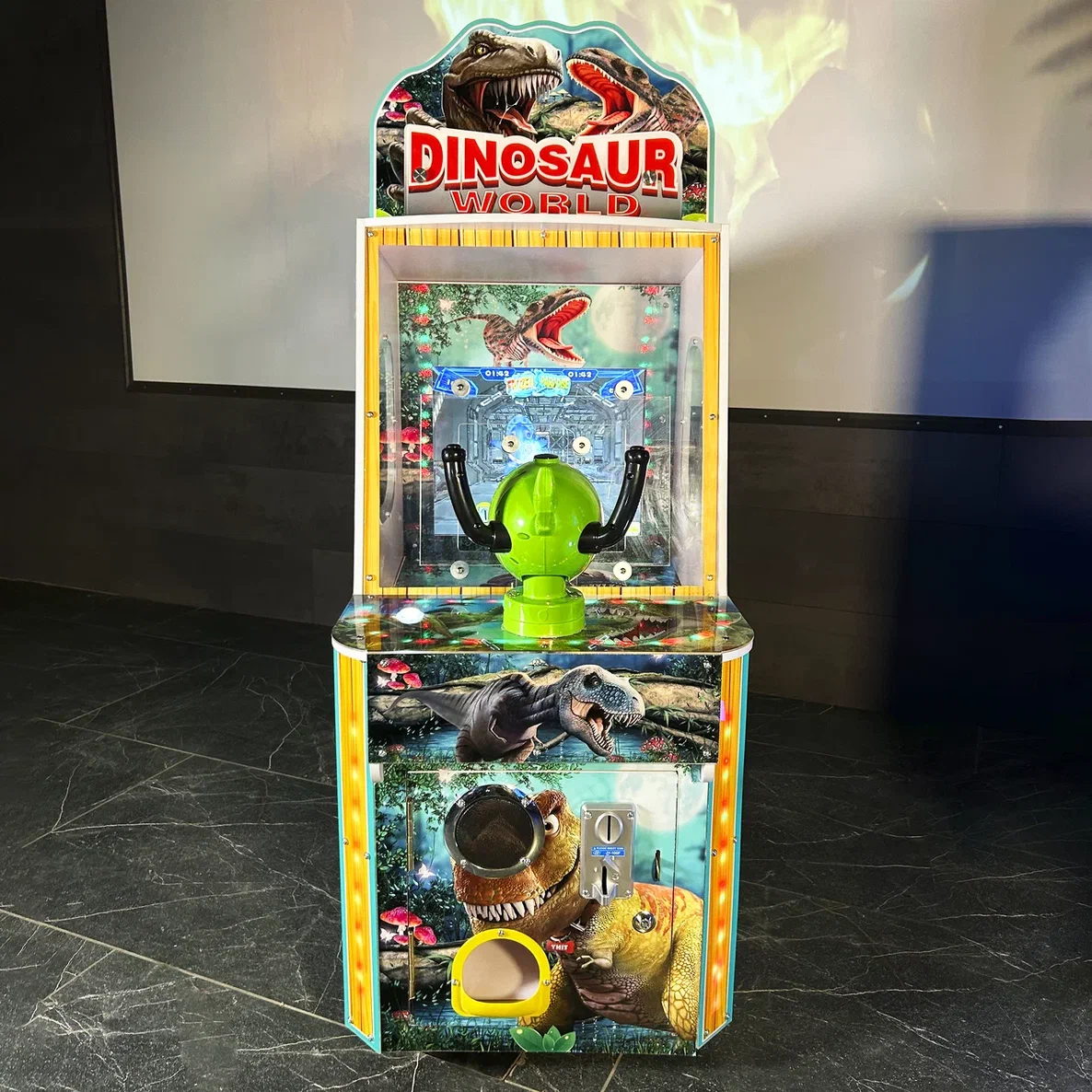 В комплекте "Мира Динозавров" предусмотрен монетоприемник, который работает с монетами или жетонами, что упрощает эксплуатацию и делает его удобным для пользователей. Установленная система статистики позволяет легко контролировать доходность автомата, предоставляя данные о количестве игр и заработанных средствах.
