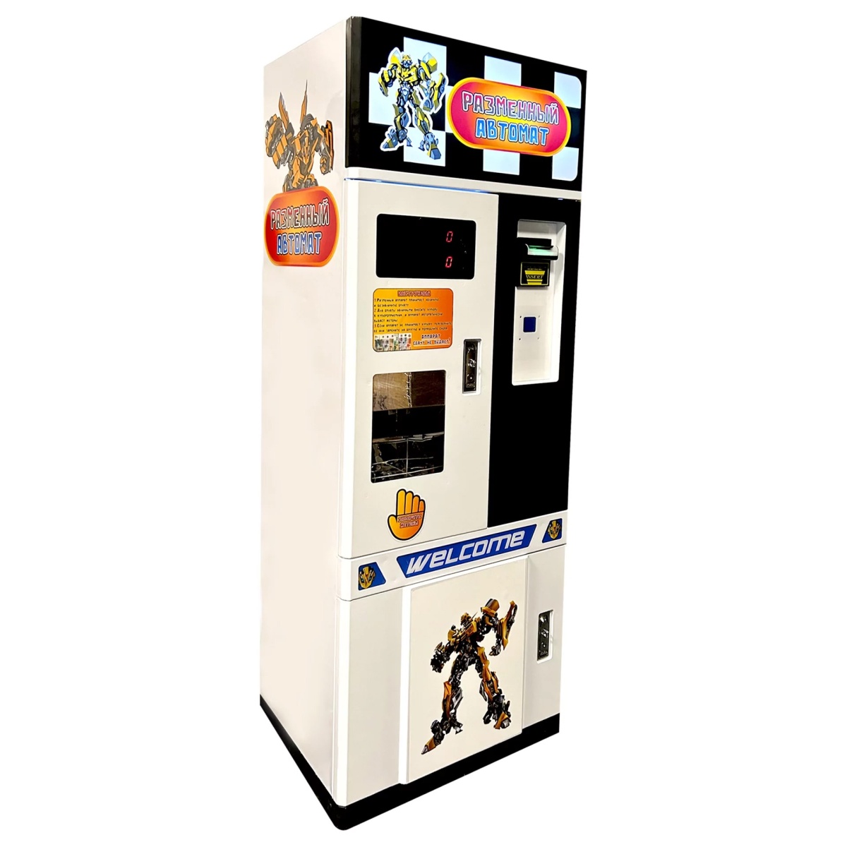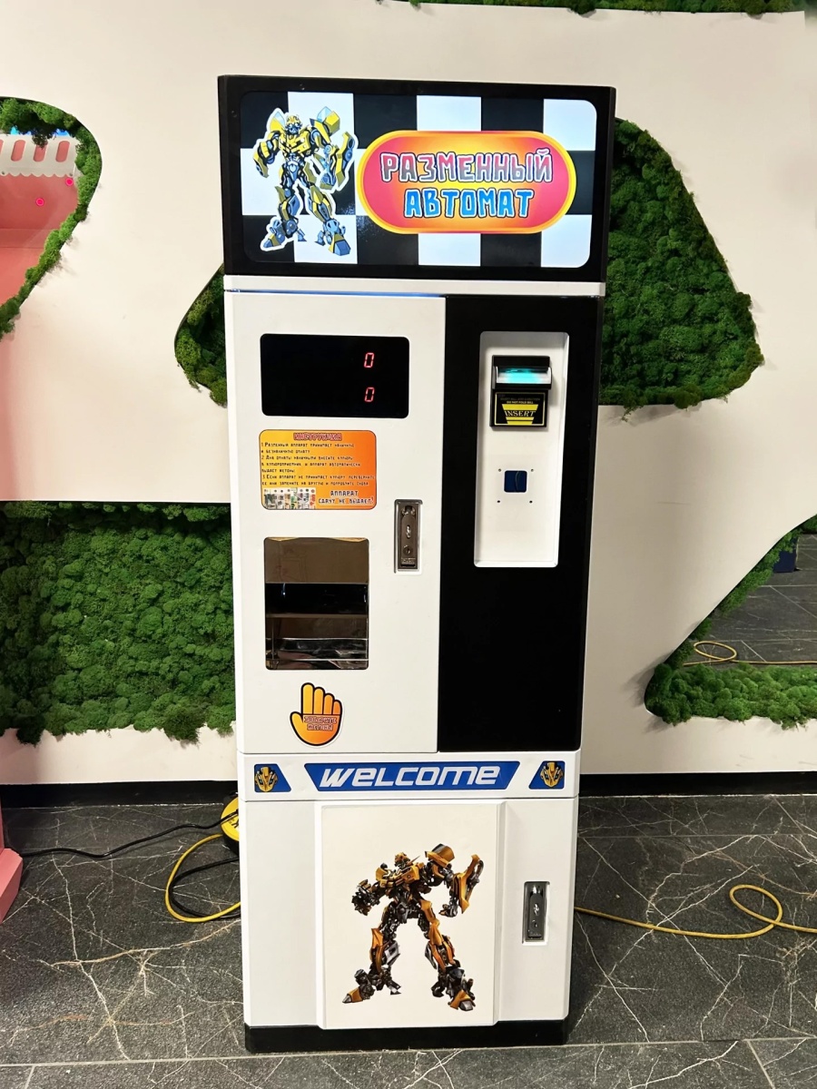 Разменный автомат для продажи жетонов "Автобот" представляет собой неотъемлемый элемент игровой зоны, функционирующей на основе жетонов. Он не только обеспечивает необходимый обмен, но и обладает привлекательным дизайном, способствующим увеличению объема продаж.